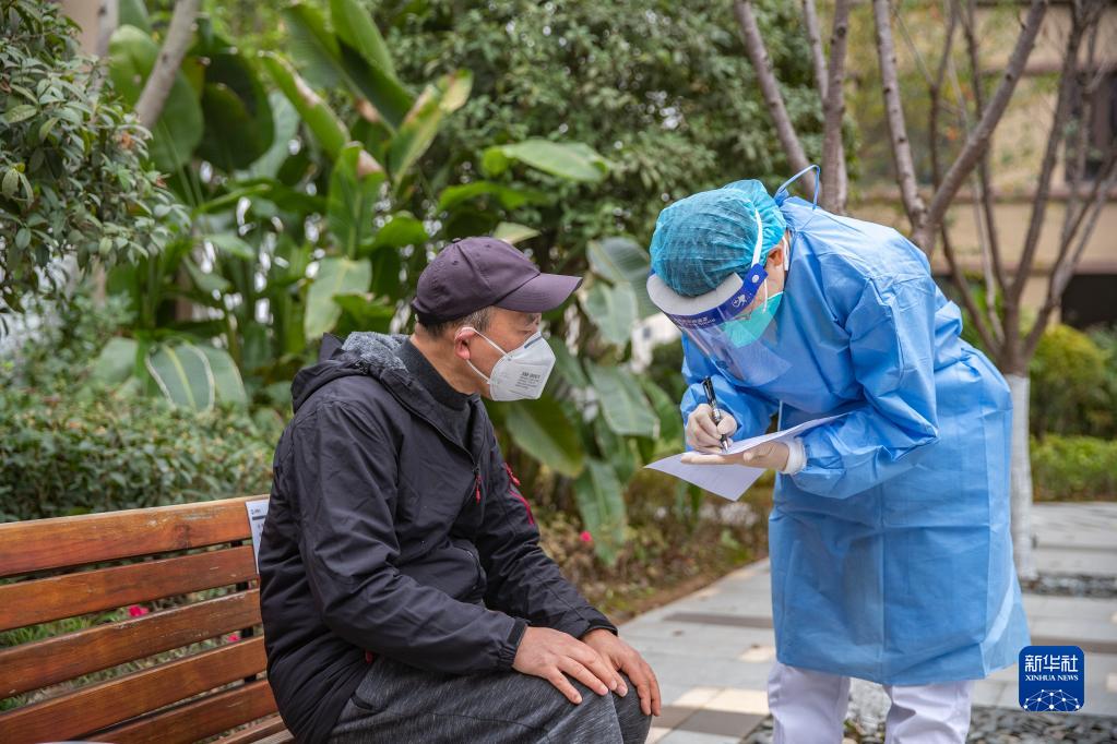 12月15日,在重庆市两江新区康美街道筹备二组社区,社区卫生服务中心的医务人员核对上门接种新冠疫苗的老人信息。新华社记者 黄伟 摄