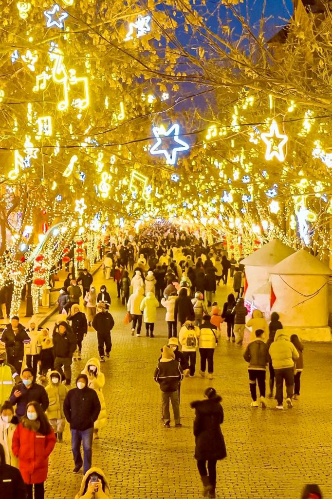 春节期间,哈尔滨中央大街上游人如织。(傅强摄)
